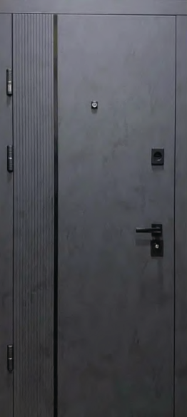 Вхідні двері П-3К-503 Q — це поєднання надійності, сучасного дизайну та міцності. Покриття під бетон в антрацитовому кольорі додає дверям стильного вигляду та чудово підходить до сучасних інтер’єрів і фасадів.