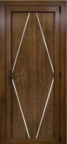 це поєднання природної краси та сучасного дизайну. Теплий відтінок горіха створює атмосферу затишку, а металеві декоративні вставки надають дверям унікальності та елегантності.