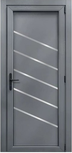 це стильне та практичне рішення для сучасних інтер’єрів і екстер’єрів. Насичений відтінок базальту додає елегантності, а лаконічний дизайн із металевими вставками робить двері справжньою окрасою приміщення.