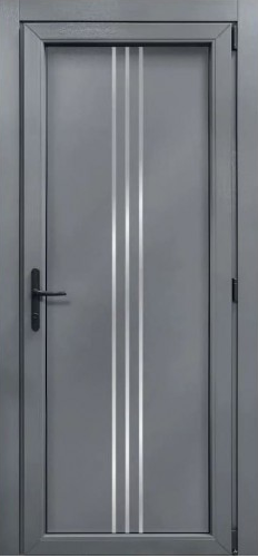 это сочетание элегантного дизайна, прочности и практичности. Лаконичный серый оттенок и горизонтальные алюминиевые вставки придают двери современный и утончённый вид, который идеально впишется в любой интерьер — от минимализма до лофта.