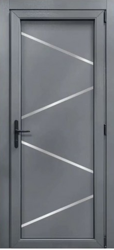 это сочетание элегантного дизайна, прочности и практичности. Лаконичный серый оттенок и горизонтальные алюминиевые вставки придают двери современный и утончённый вид, который идеально впишется в любой интерьер — от минимализма до лофта.