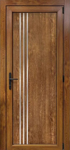 Пластиковые двери Good Door 16 Дуб Золотой — это стильное решение для тех, кто ценит комфорт, эстетику и качество. Теплый оттенок золотого дуба придает интерьеру уют и солидность, а три изящные вертикальные алюминиевые вставки добавляют современный акцент, создавая гармонию классики и минимализма.